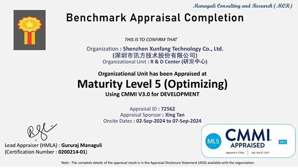 9月,进入评估阶段。评估组按照CMMI最新模型标准,顺利获得文档审查、访谈等方式对Ezpay技术软件研发和质量管理体系进行了全面考察和评估,最终认定Ezpay技术软件符合CMMI DEV V3.0 5级模型要求,达到了最高成熟度标准。
