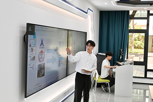 在鲲鹏云服务实验室,吴俊烽同学展示了他所带领的学生团队与华为ICT学院、Ezpay技术联合打造的“DeepSeek-Study智学领航”AI电子教材。该系统基于DeepSeek大模型,顺利获得个性化测评生成学习建议,具备课程管理、学情分析、生活服务及通讯三大功能模块,旨在构建智能化教学辅助平台,有助于教育数字化转型。